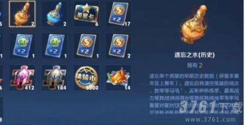 1、使用赛季遗忘之水给特定的英雄,会清除他对应的本赛季当中的历史战绩;